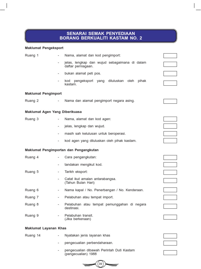 Borang kastam no 2. 12 Pihak ketiga yang membeli dan kemudian memindahkannya kepada premis yang dibenarkan di KUK sebelum dieksport. ZB Ke KBC Borang Kastam No. B Mengecop tarikh terima dan nama Penguasa Kastam untuk ditandatangan di setiap dokumen bagi mengesahkan bahawa borang K2 dan dokumen sokongan telah diterima.